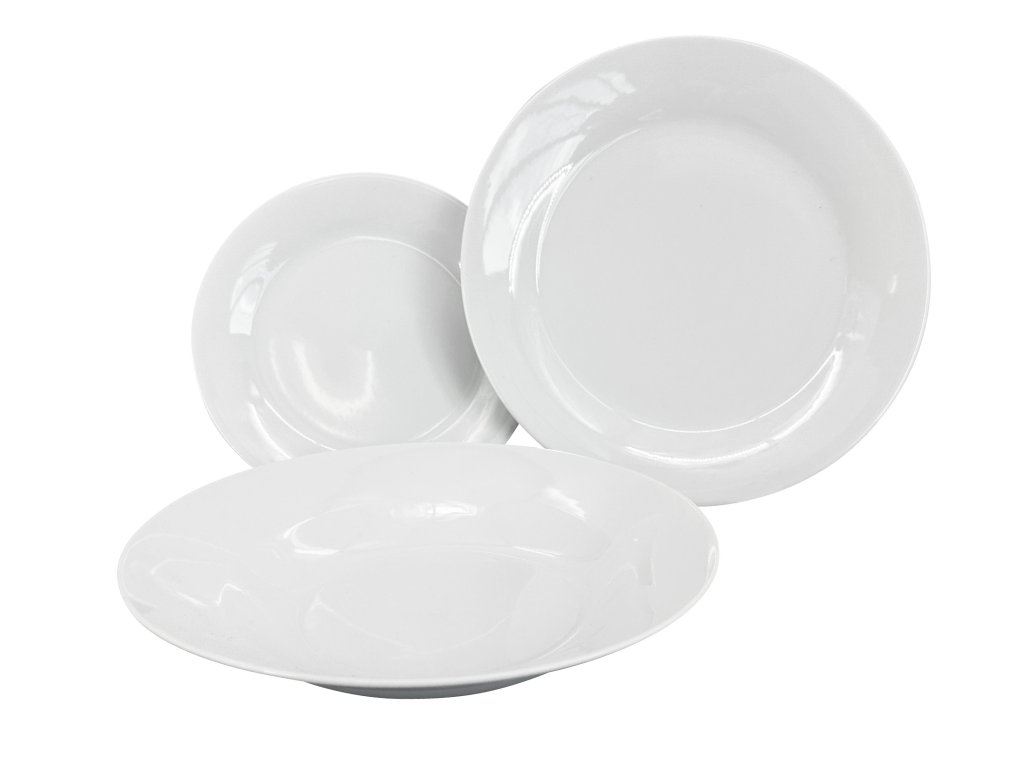 Hledáte spolehlivý a univerzální základ pro vaše stolování? 18dílná sada talířů Ronda od by inspire je kompletní jídelní servis pro 6 osob, který kombinuje robustnost s nadčasovou elegancí. Sada zahrnuje: 6x mělký porcelánový talíř (průměr 27 cm) na hlavní chody, 6x hluboký porcelánový talíř (průměr 23 cm) na polévky a těstoviny, a 6x dezertní porcelánový talíř (průměr 19 cm) na pečivo a dezerty.
