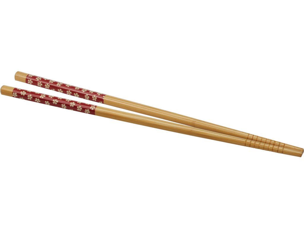 Bambusové hůlky s červenou rukojetí a bílými květy (sada 8 ks, 24 cm)