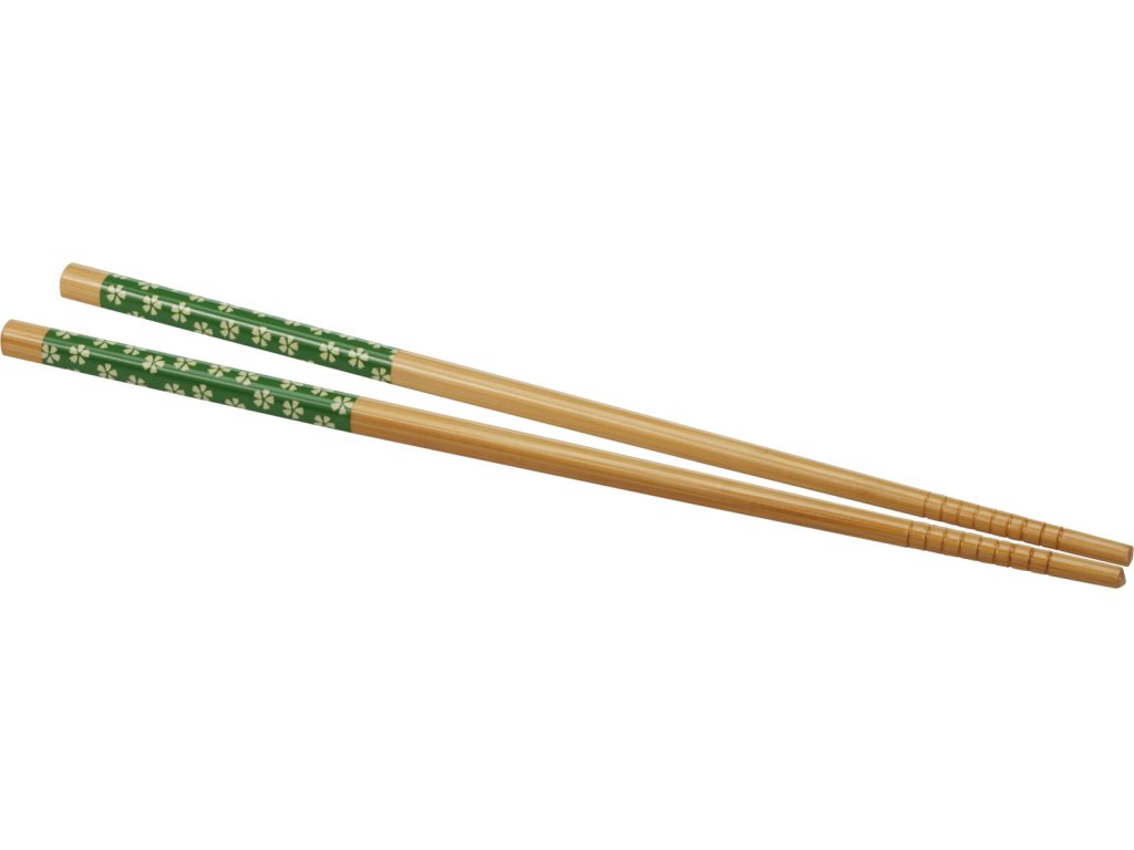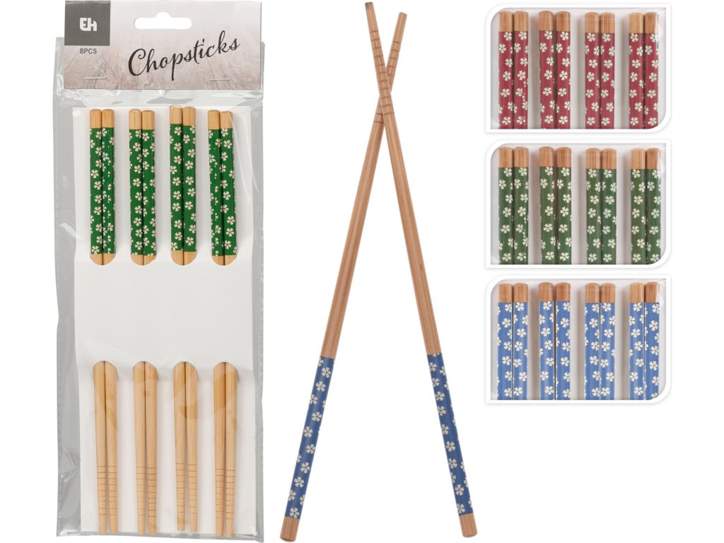 Bambusové hůlky se zelenou rukojetí a bílými květy (sada 8 ks, 24 cm)