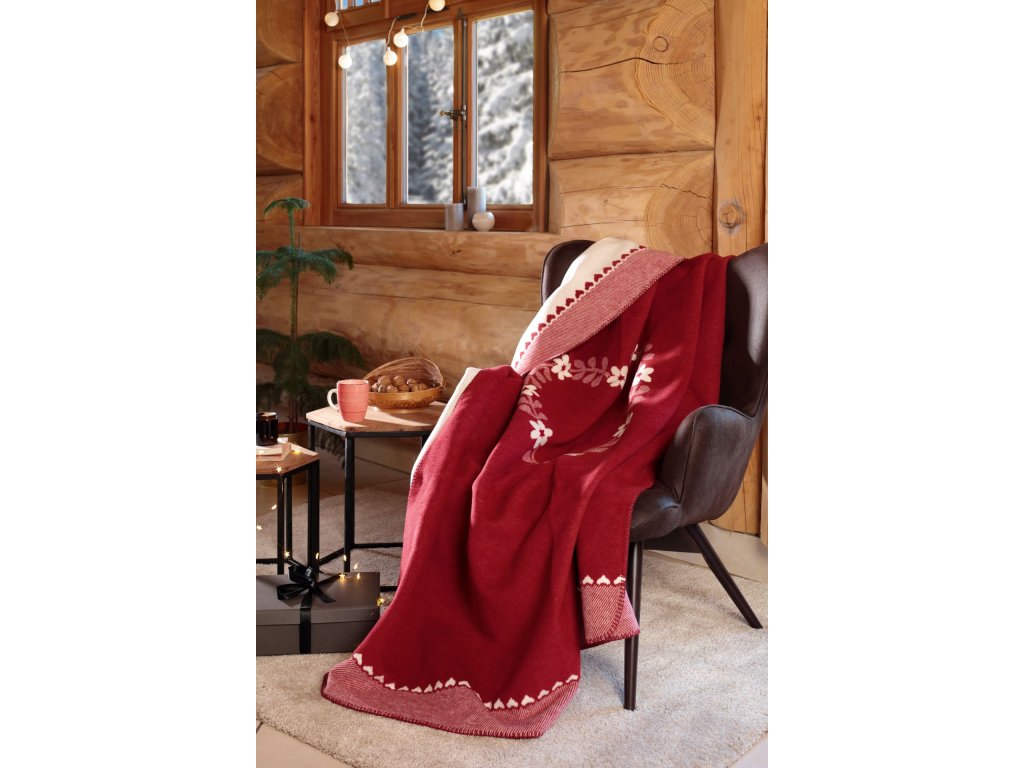 Plyšová deka "Heart-Warming" zaujme svým zimním designem a vánočními barvami tmavě červené a decentní šedé. Centrálně umístěné srdce z květin a listů dělá z deky pohovky poutač, který dokonale zapadne do vašeho domova. Deka samozřejmě není jen vizuálním zvýrazněním, ale také interně: k výrobě této deky bylo použito minimálně 50 % recyklovaných surovin.
