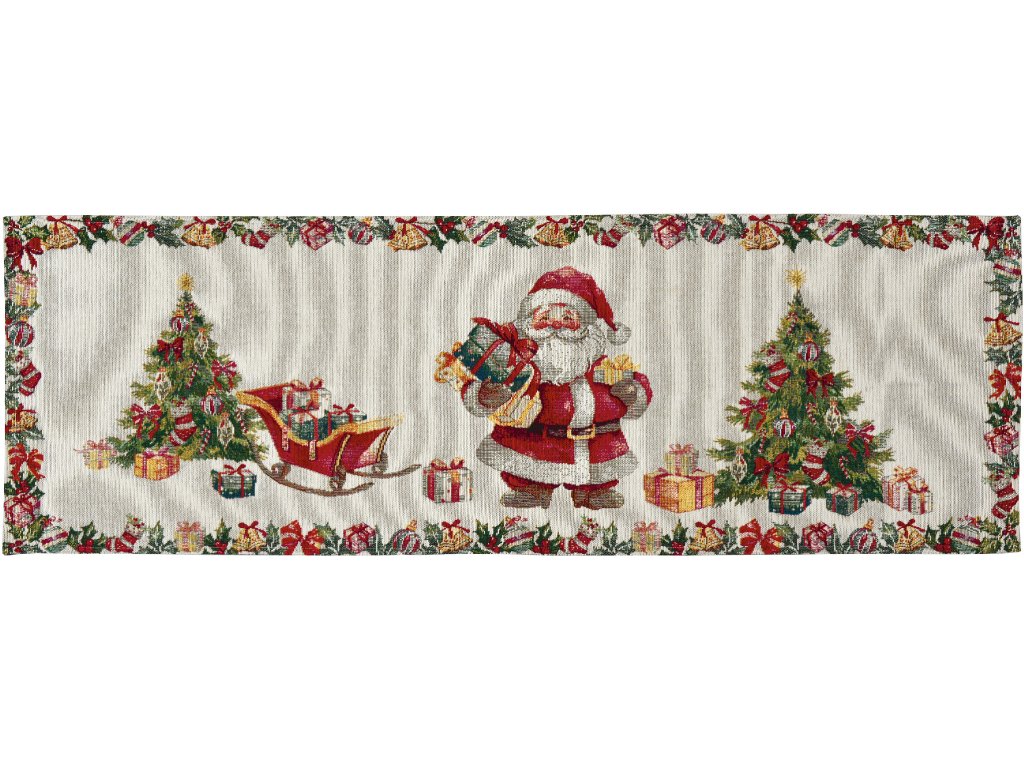Vneste do svého stolování nádech umělecké tradice s naším gobelínovým středovým pásem Big Red Man s vánočním motivem. Precizně tkané z kvalitních materiálů s bohatými vzory inspirovanými klasickými motivy. Tento typ prostírání kombinuje estetiku s praktičností. Je ideální volbou pro slavnostní chvíle i každodenní použití.