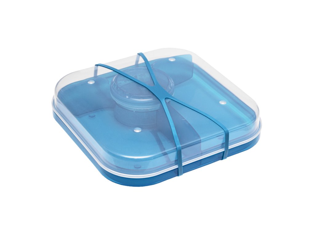 Malá, velmi praktická nádoba na svačiny mimo domov. Perfektní na krátké výlety, procházky, výlety do parku nebo na hřiště. Má část rozdělenou na přihrádky, víko, které lze použít jako talíř a gumičku, která víko upevňuje ke dnu. Je plochý - nezabere moc místa a přitom je prostorný. Prostě ideální na malé občerstvení.