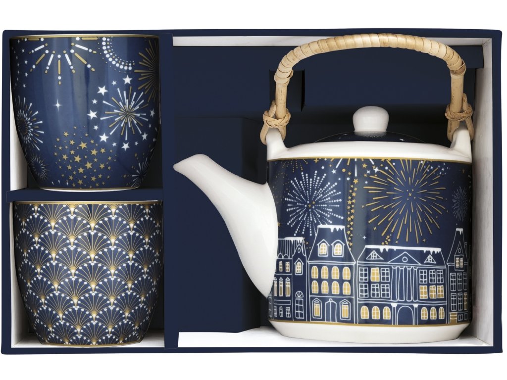 Čajová konvička s dvěma pohárky Midnight – Dokonalý dárek s motivem silvestrovské oblohy. Elegantní čajový set pro skutečné milovníky čaje. Hledáte stylový a zároveň praktický dárek pro své blízké nebo si chcete zpříjemnit chvilky s šálkem čaje? Čajová konvička s dvěma pohárky Midnight s motivem silvestrovské noční oblohy je ideální volbou. Tento nádherný set v sobě spojuje estetiku, kvalitu a funkčnost – potěší nejen na pohled, ale i při každodenním používání.