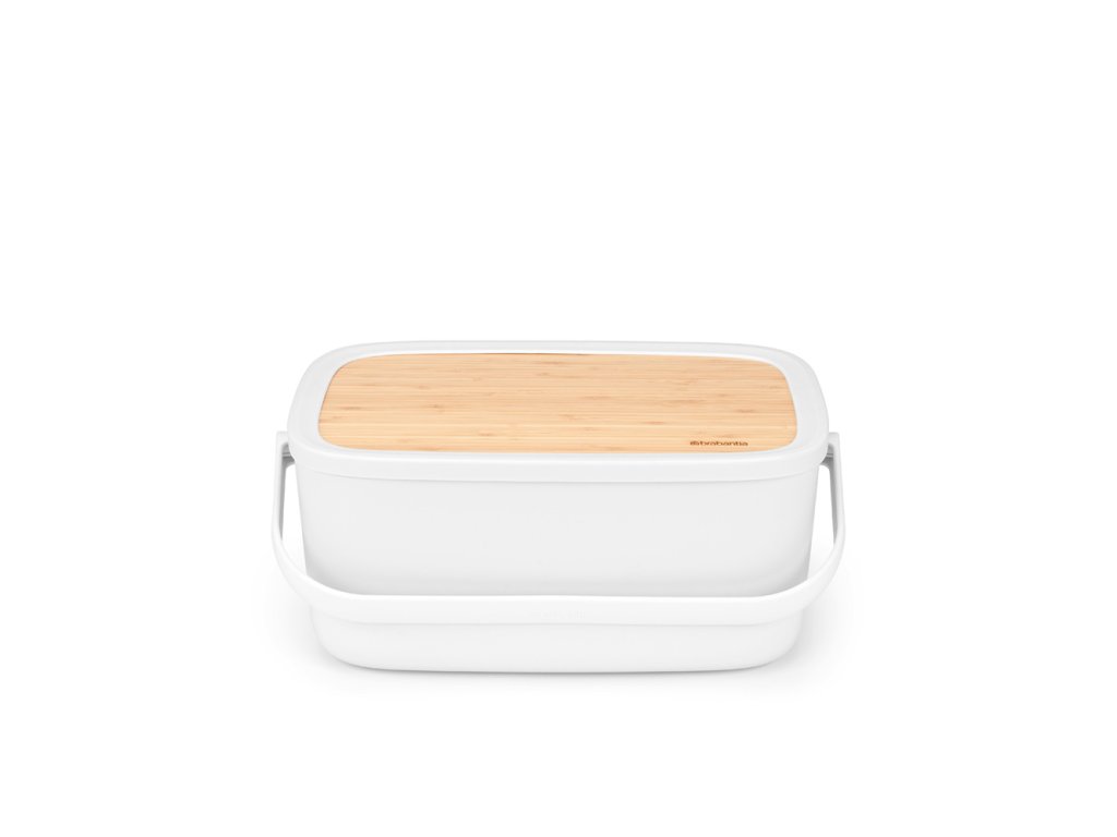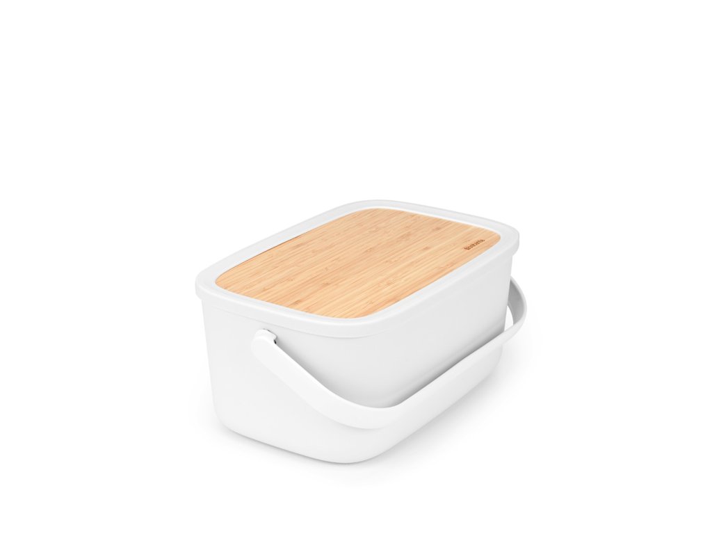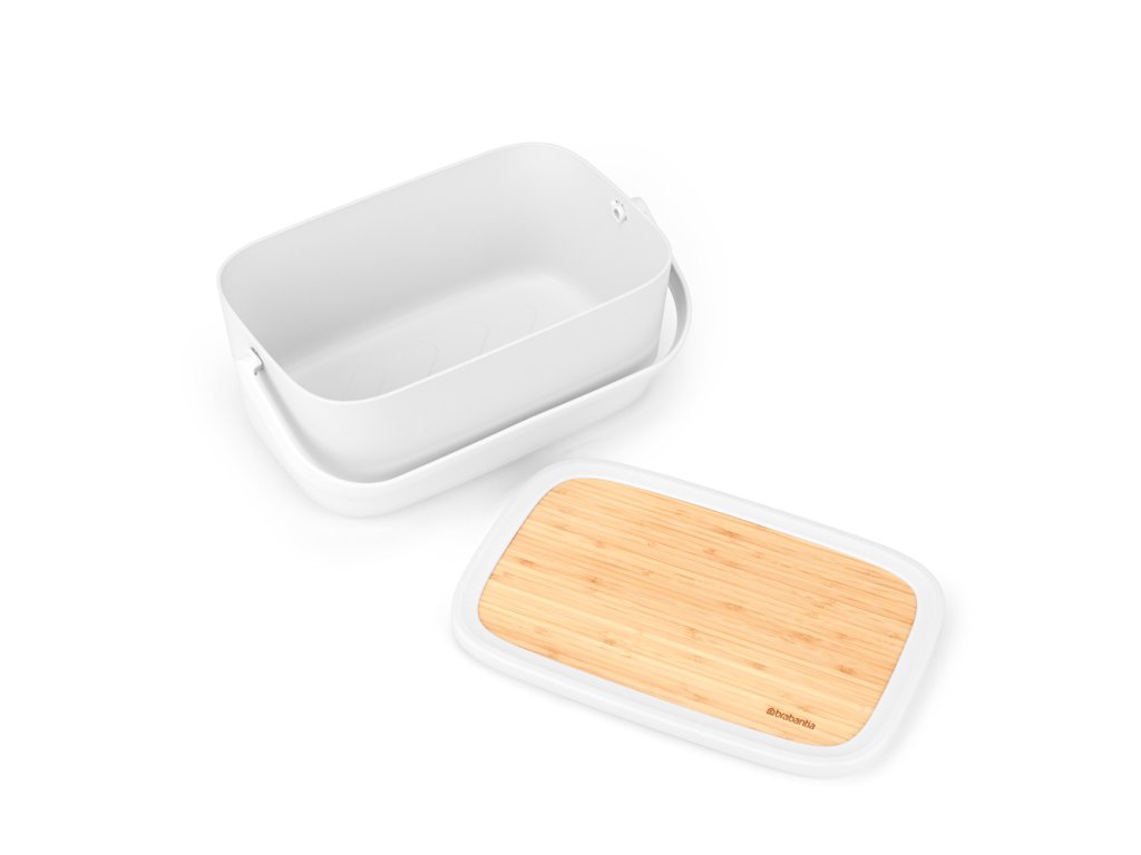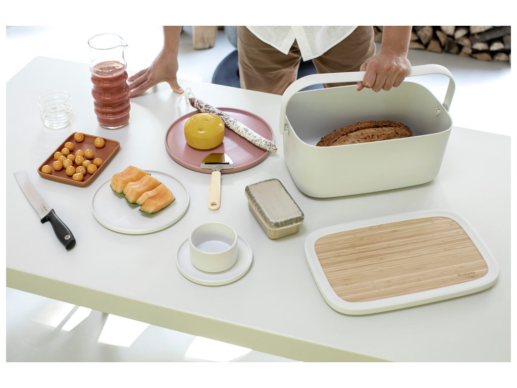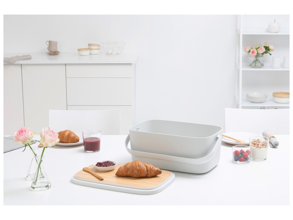Plastový chlebník s bambusovým víkem od holandské značky Brabantia.