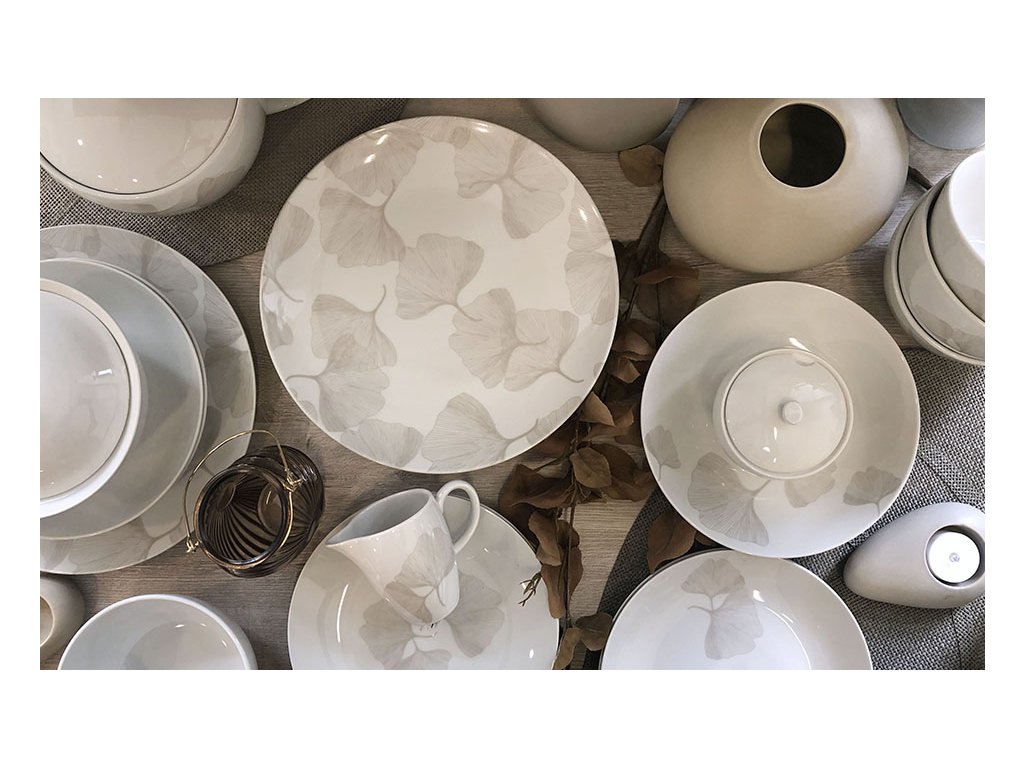 Porcelánová kolekce s jemným dekorem v béžové barvě nazvaná Ginkgo Beige. Neobvyklou listovou strukturu stromu Ginkgo biloba nebo-li Jinanu dvoulaločného zachytili designéři české značky by inspire…porcelán s českou duší. Béžová barva je nadčasová a neutrální, krásně její pomocí propojíte moderní nábytek s lesklým povrchem a dnes tolik moderní dřevo.