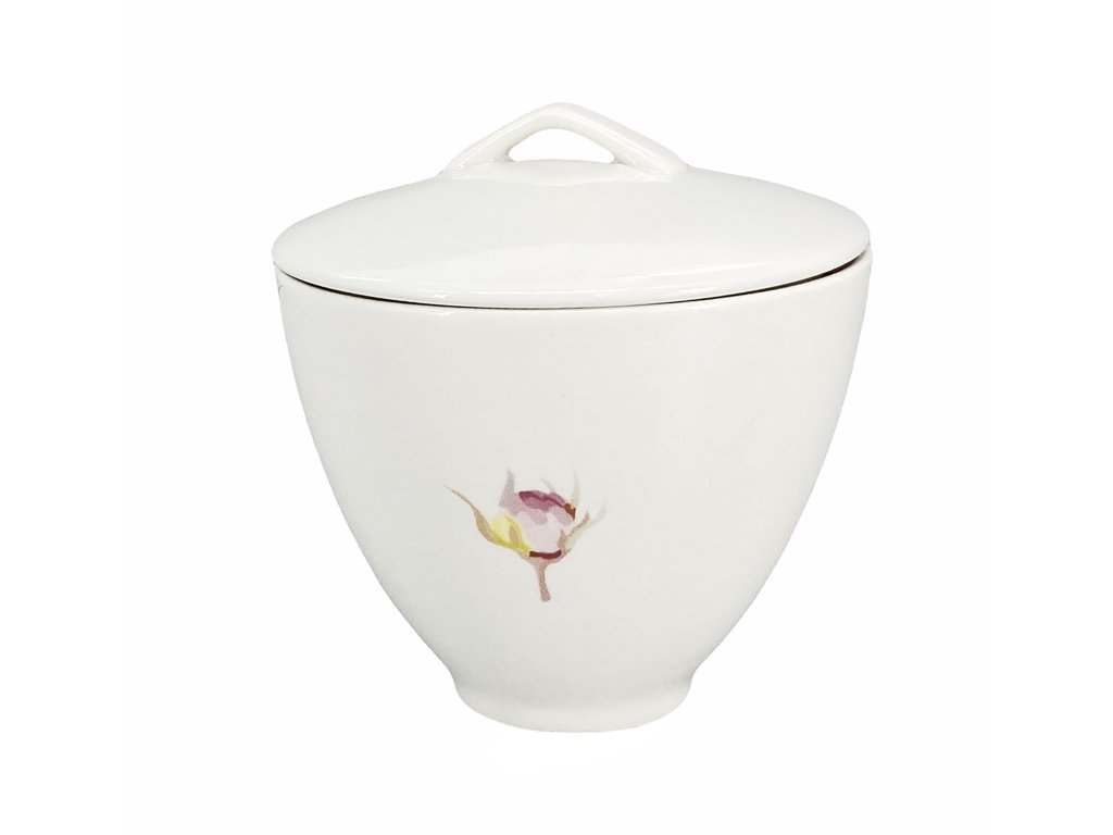 Porcelánová cukřenka Poetica, bílá s dekorem růže.