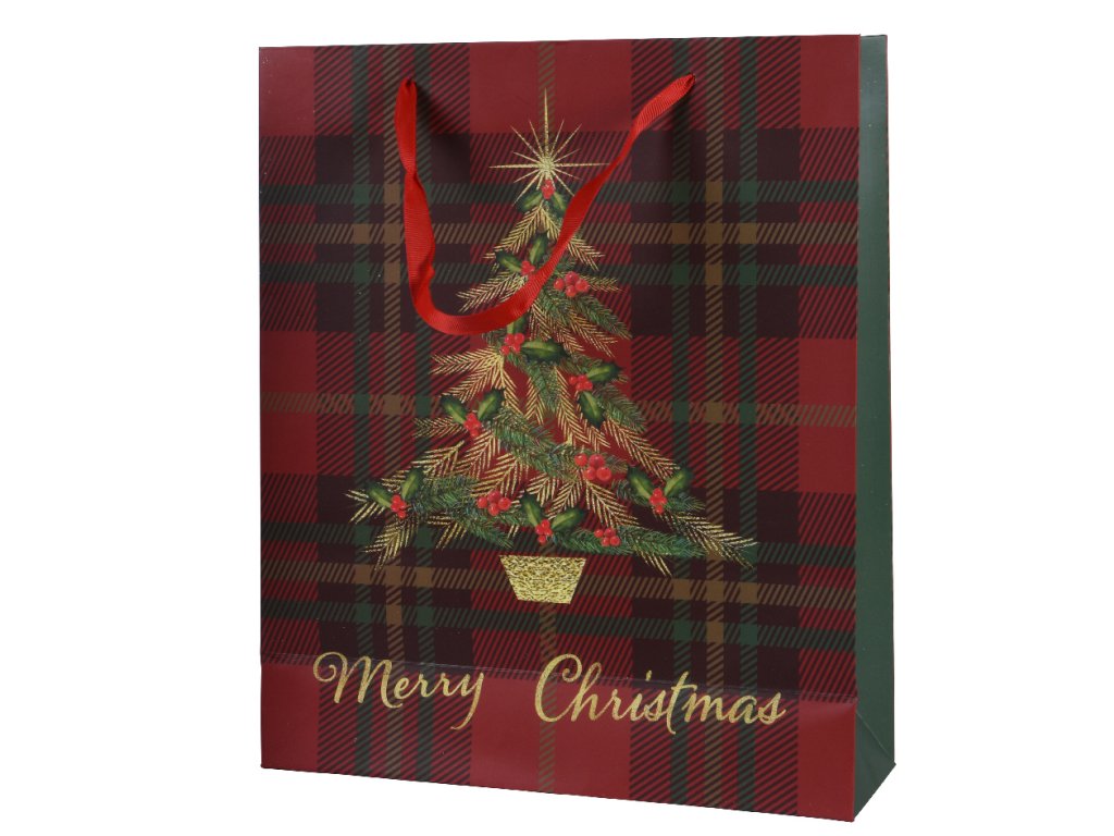 Dárková taška XMAS TREE, 10x26x32 cm, červená, KSD
