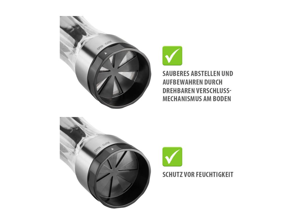 - Snadné dávkování díky pohodlnému otočnému pohybu na nerezovém kroužku