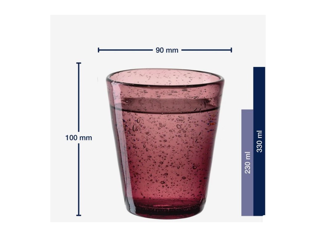 Objem: 330 ml (plný), 230 ml (užitný)