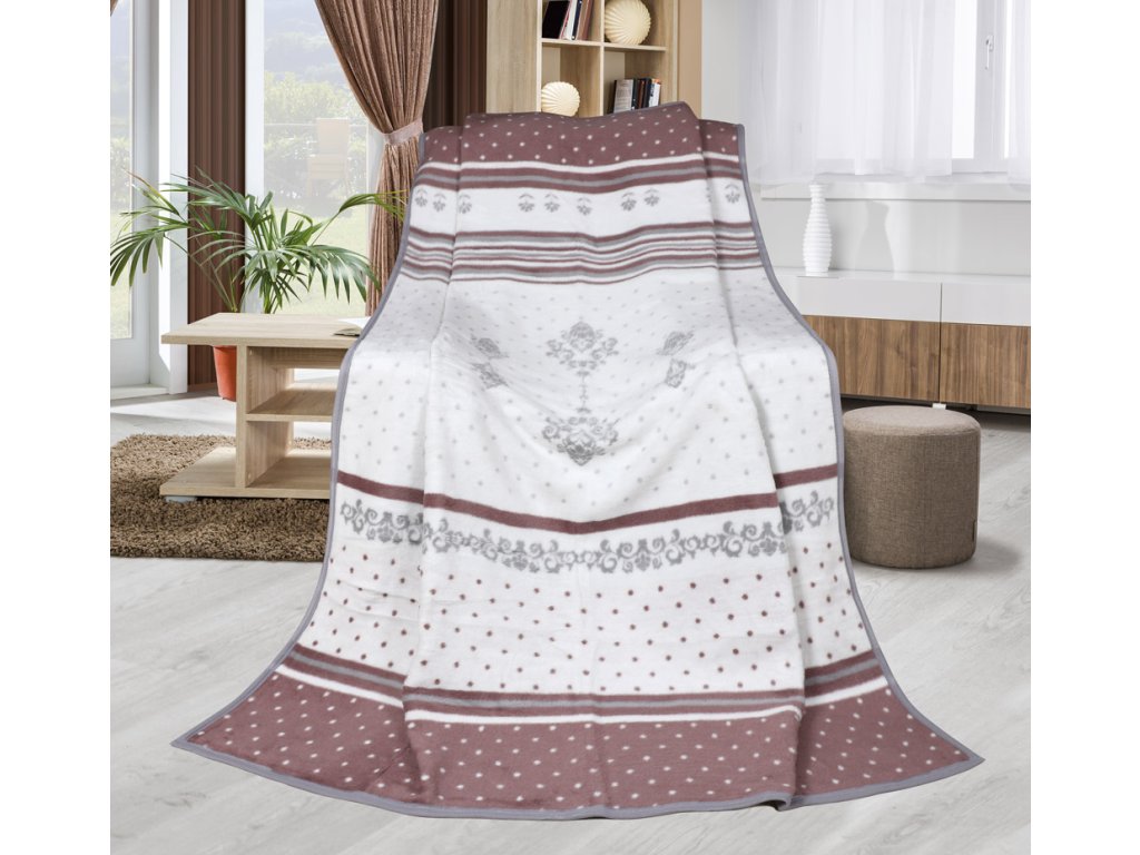 Vzorovaná deka Karmela je díky velkému podílu akrylového materiálu velmi příjemná na omak. Akryl nahrazuje vlněné materiály. Je hřejivá a příjemná na dotek. Je vhodná pro odpočinek, ale lze ji využít i jako letní přikrývku nebo přehoz na pohovku. Deka je oboustranná, lemována po obvodu lemovkou.