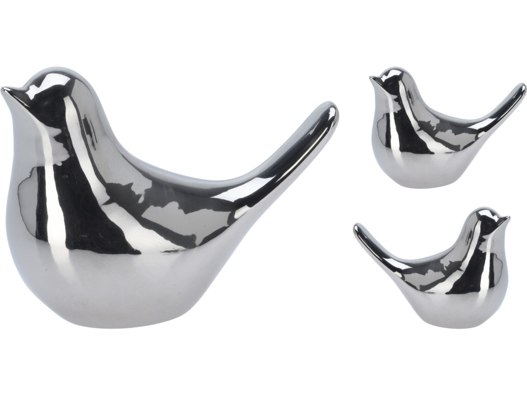 Dekorace Bird 10cm, stříbrná, pohled napravo