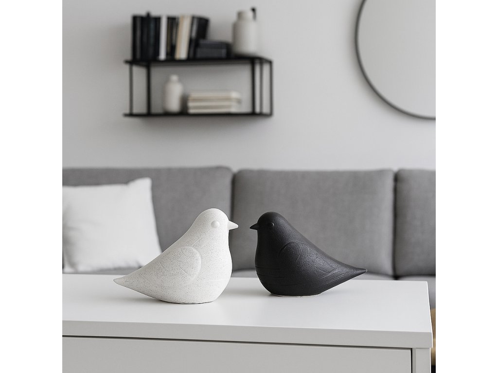 Elegantní dekorativní ptáček z matného černého polyresinu vyniká svým jednoduchým, avšak výrazným vzhledem. Minimalistický tvar a decentní povrchová úprava působí přirozeně a moderně zároveň. Vhodný jako doplněk na polici, parapet nebo do přírodní vánoční kompozice.