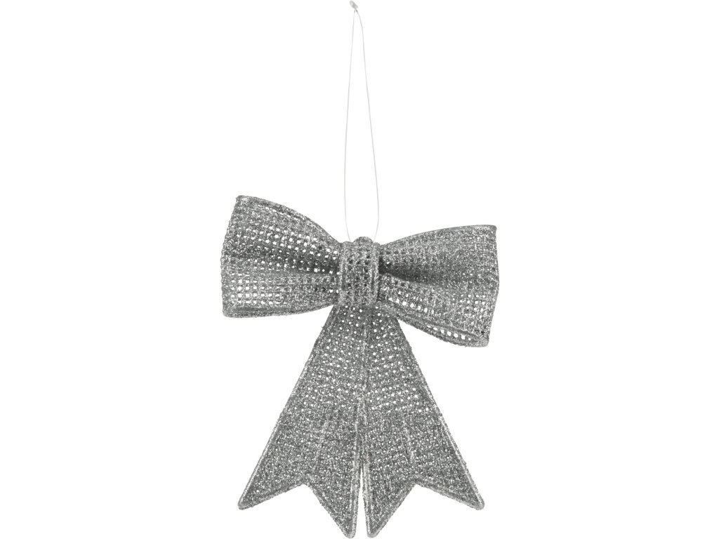 Dekorační mašle 10cm, s třpytem, stříbrná