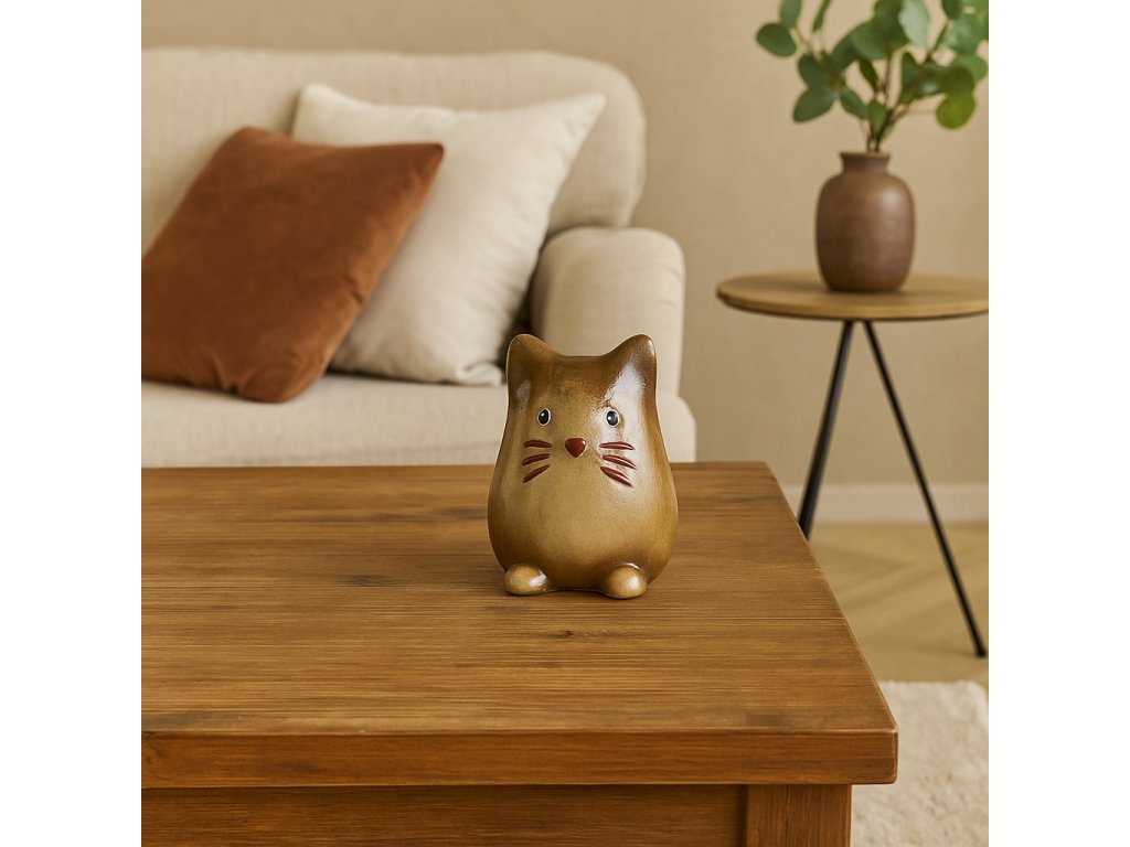 Rustikálně laděná hnědá varianta této porcelánové kočky zaujme přirozenou barevností a kombinací lesklého a matného povrchu. Výborně se hodí do přírodních a venkovských interiérů jako stylová dekorace nebo tematický doplněk.