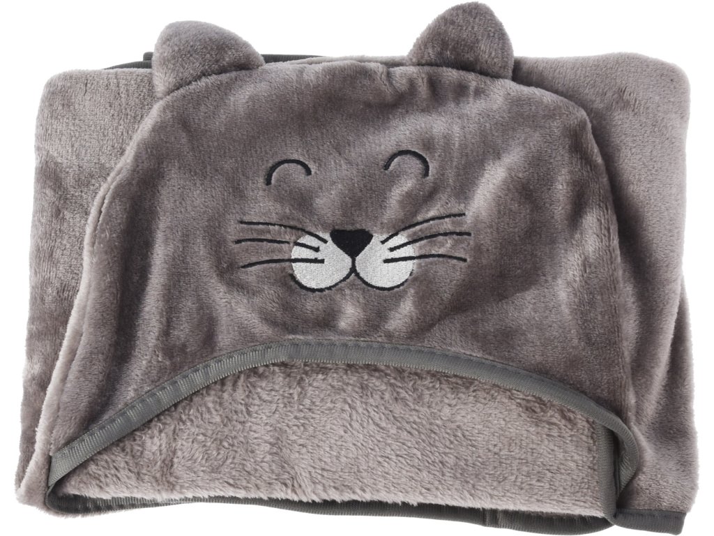 Dětská fleecová deka s kapucí – kočka, 70 × 100 cm, šedá