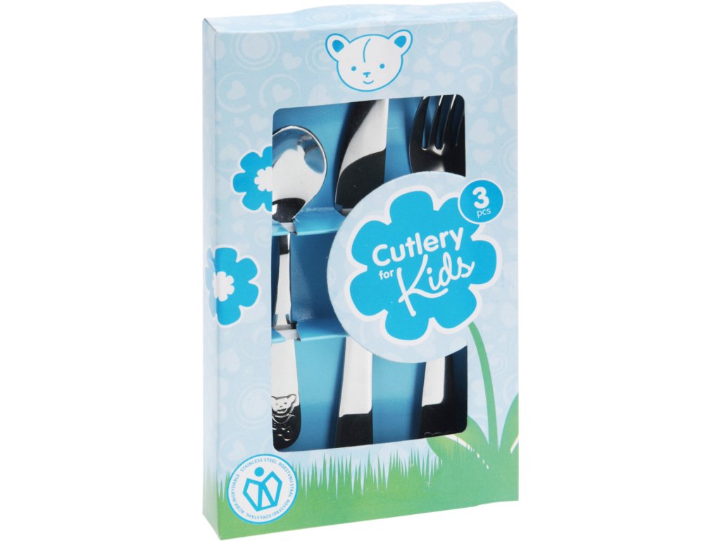 Dětská sada příborů Medvídek – 3 ks, nerez, modré balení