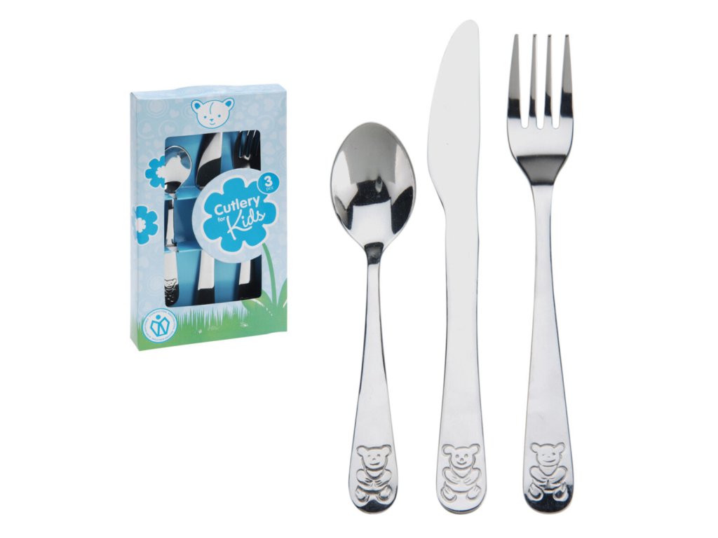 Dětská sada příborů Medvídek – 3 ks, modrá, nerezová ocel