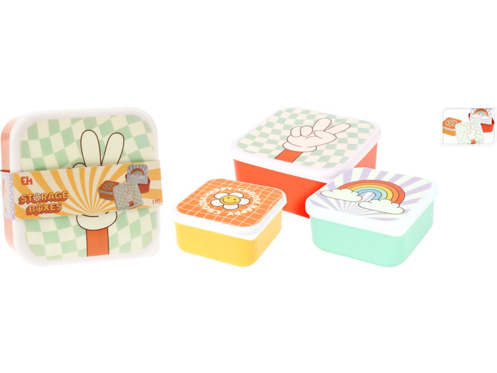 🎨 Design krabiček: každá má jiný veselý motiv – duha, smajlík a gesto V (peace).