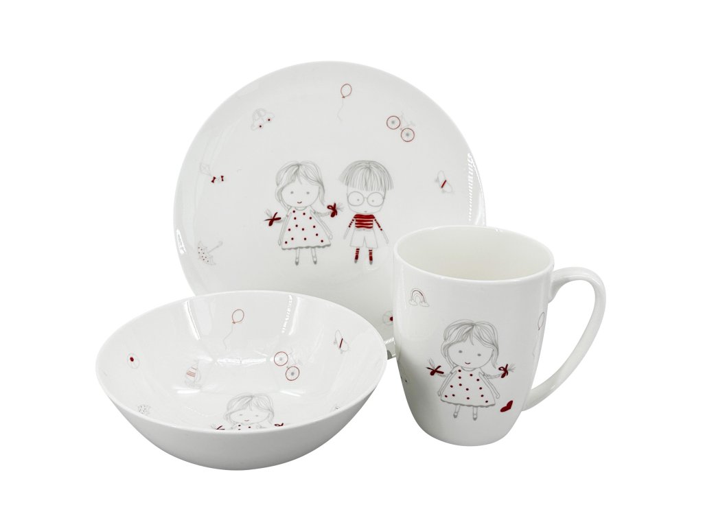 Jedinečný dekor s motivem usměvavé holčičky s puntíky v jemných červených tónech promění i to nejnudnější jídlo v zábavnou hostinu. Hlavní postava holčičky zdobí hrnek a misku, zatímco na talíři se objevuje i její kamarád, aby podpořil myšlenku přátelství a hry. Kvalitní porcelán je odolný, má hladký povrch a je naprosto bezpečný.