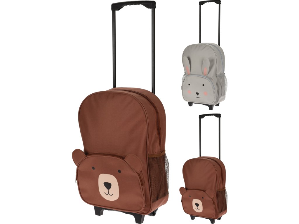 Dětský kufr na kolečkách s designem medvěda pro nejmenší cestovatele. Roztomilý dětský kufřík ve tvaru zvířátka udělá radost každému dítěti. Děti rády napodobují své rodiče, potřebují tedy svůj kufřík pro sbalení svých věcí. Dětský kufr je lehký, děti zvládnou manipulovat s kufříkem sami.