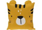 Dětský polštář Lev – písková barva, 43×43 cm, měkký plyš, výšivka, ouška, 100% polyester.