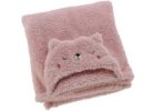 Dětská fleecová deka s kapucí v šedobéžové barvě, motiv králíčka, výšivka a ouška, rozměr 70 × 100 cm.