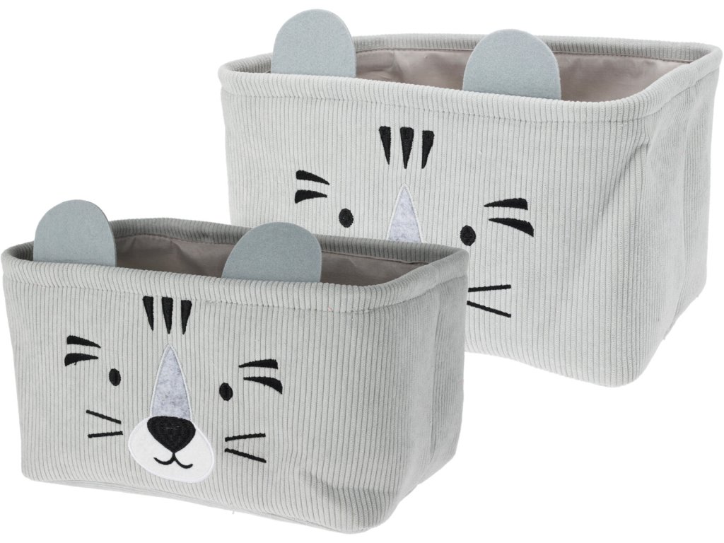 Dětský úložný košík Tygr, set 2 ks, manšestr, šedá