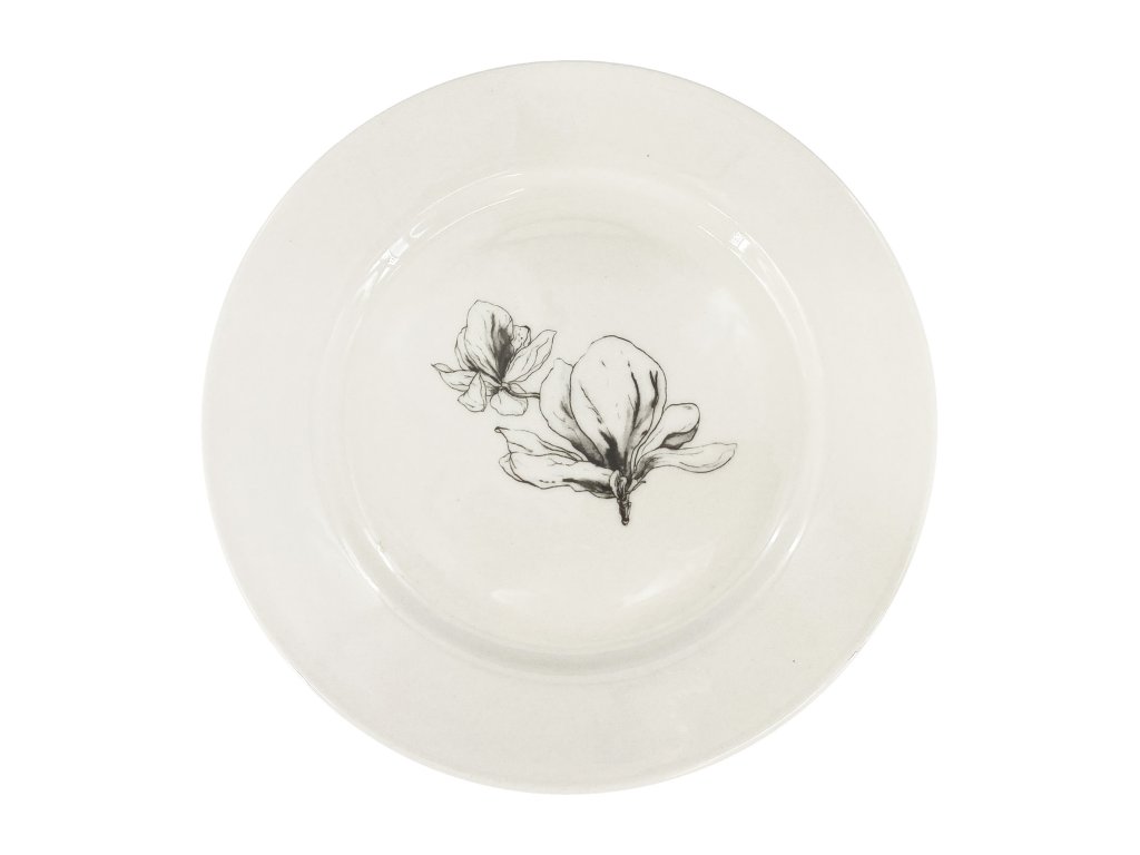 Dezertní talíř Fine Twig, bílá s dekorem magnolie v šedožluté barevné kombinaci.