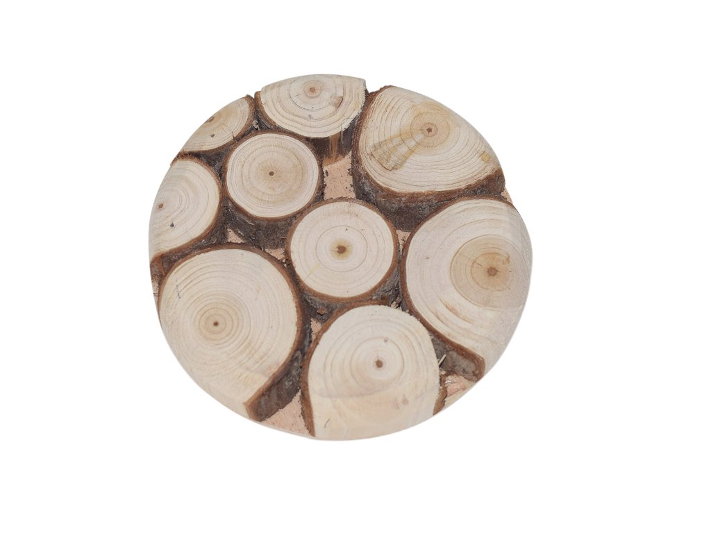 Vneste do svého interiéru jedinečný rustikální detail s Dřevěnou podložkou WoodSlice S o průměru pouhých 13 cm. Tato nejmenší podložka z řady WoodSlice je autentickým dílem přírody. Je vyrobena z čistě přírodního Paulovnie dřeva technikou mozaiky, kde je základ tvořen podložkou, na níž jsou aplikovány menší, pečlivě nařezané příčné řezy větví.
