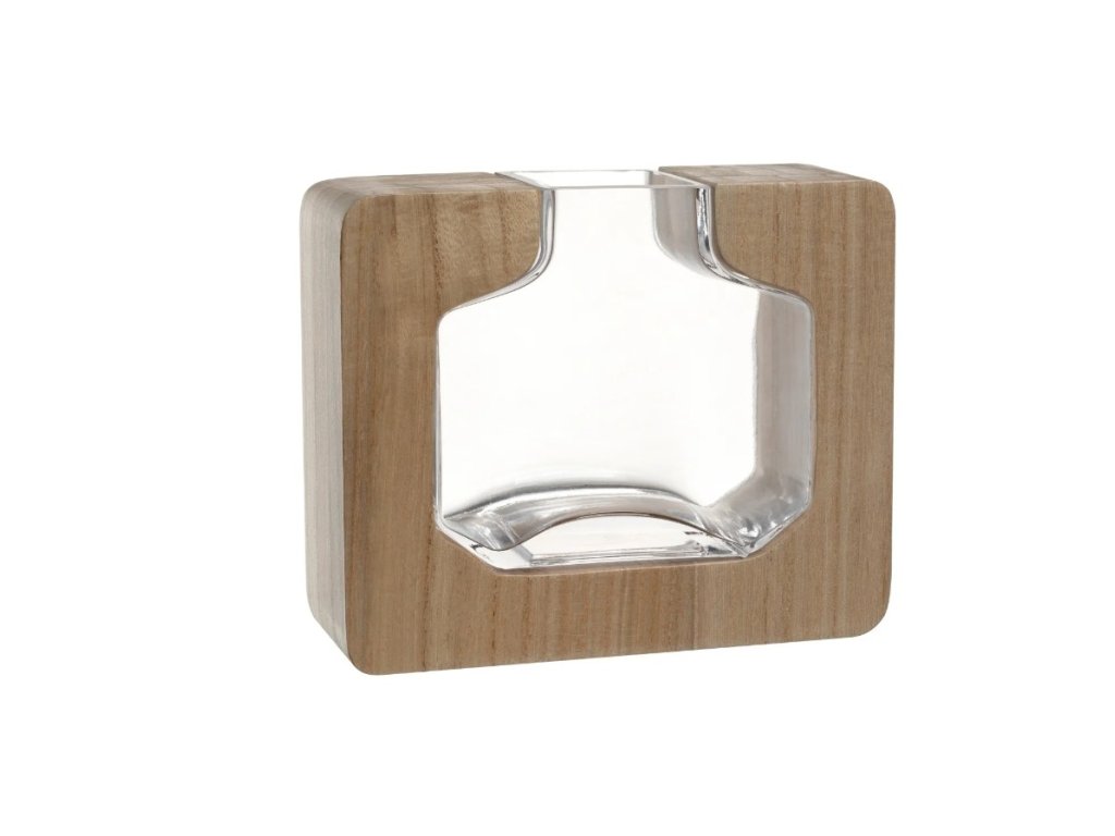 Kolekce: Leonardo Dřevěná váza AUTENTICO 18 cm – dřevo a sklo