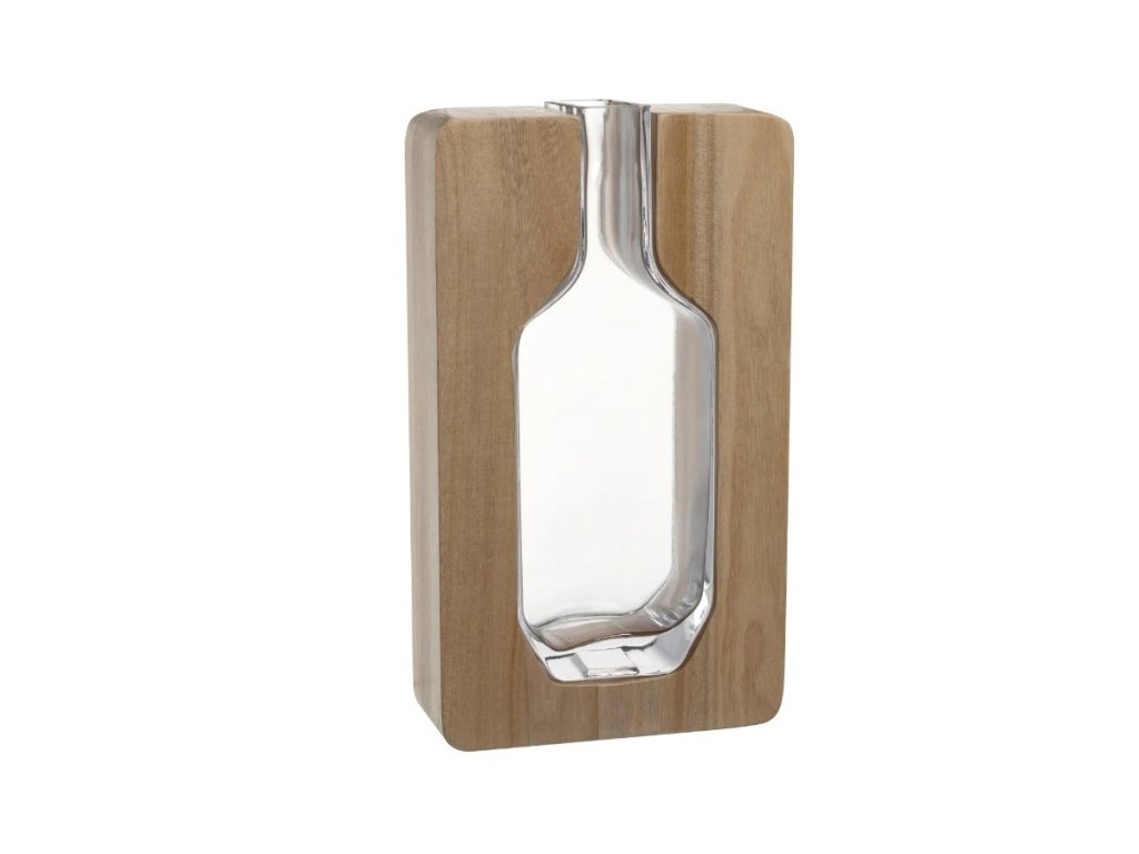 Kolekce: Leonardo Dřevěná váza AUTENTICO 30 cm – dřevo & sklo