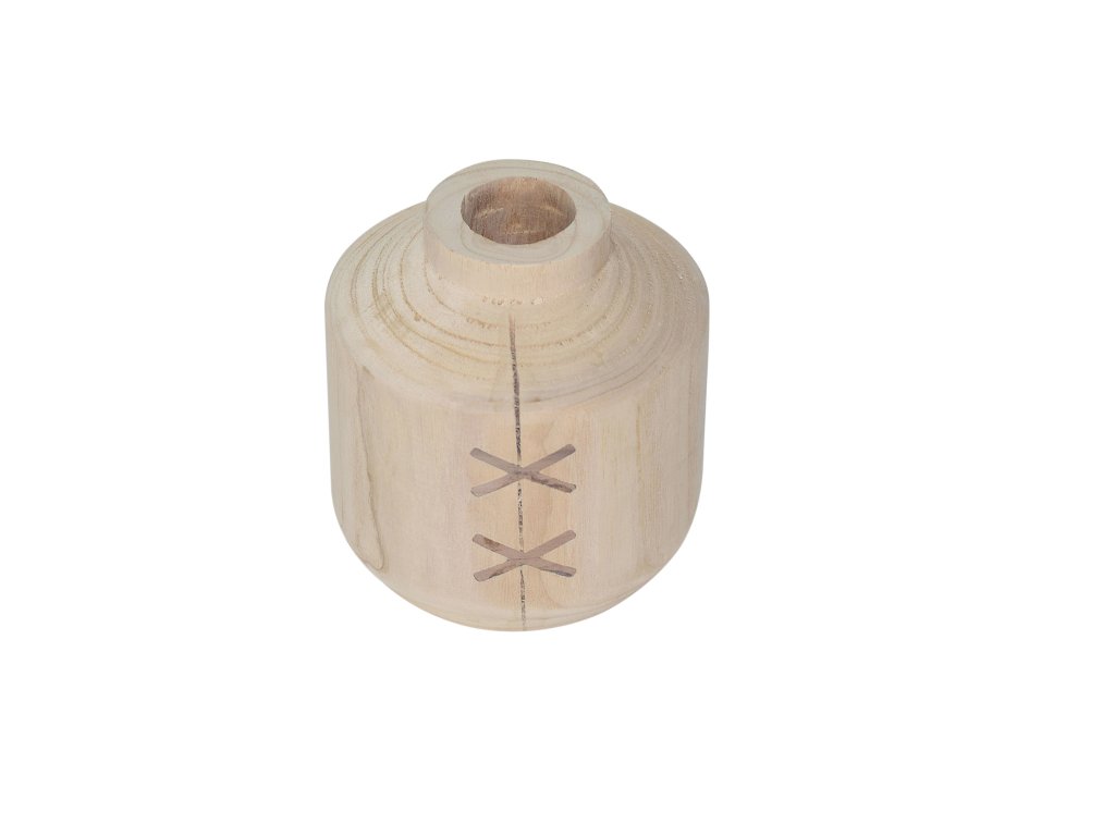 Jedná se o přírodní surové dřevo, které není lakované, což podtrhuje jeho autentickou krásu. To, co dělá tuto vázu skutečně unikátní, je její rustikální prošívání ve tvaru křížků, které imitují tradiční stehy. Tyto intarzie jsou umístěny přes dekorativní prasklinu ve dřevě, což dodává váze ještě autentičtější a originálnější vzhled s výrazným boho nebo venkovským šmrncem. Díky přírodnímu původu je každý kus originál, s jedinečnou kresbou a charakterem dřeva.