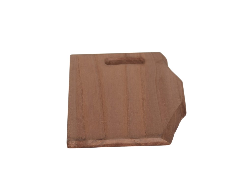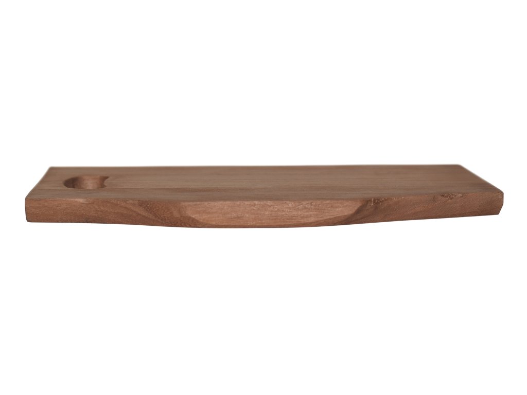 Prkénko je vyrobeno z Paulovnie dřeva, které je lehké a stabilní. Je mořené do tmavšího, sytého odstínu, což podtrhuje jeho rustikální vzhled, přičemž je stále považováno za surové, nelakované dřevo. Hranatý tvar s mírně zkoseným rohem a praktickým výřezem pro uchopení nebo zavěšení dodává prkénku moderní nádech. Díky jedinečné kresbě je každý kus originál.