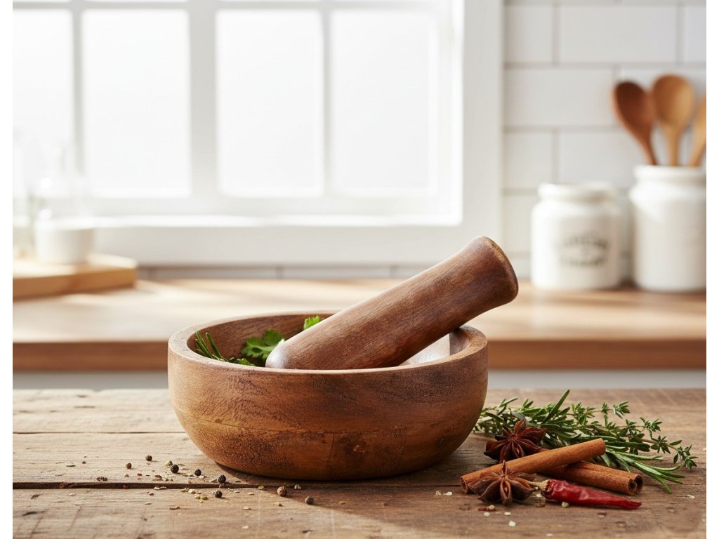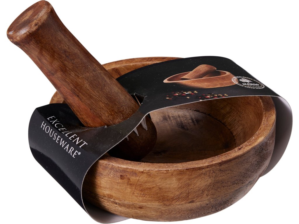 Dřevěný hmoždíř s tloučkem z mangového dřeva (15x15x5 cm)