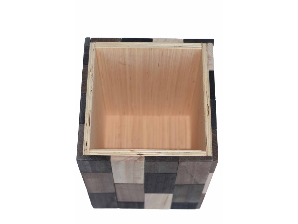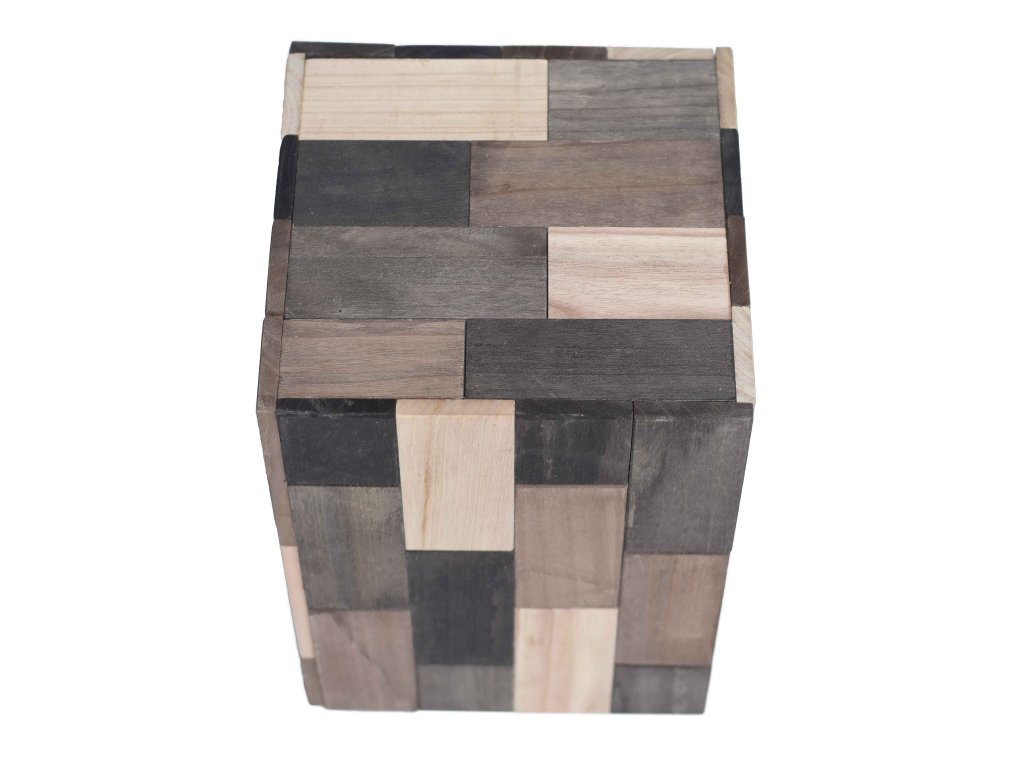 Hledáte originální nábytek, který se stane uměleckým dílem ve vašem obývacím pokoji? Dřevěný odkládací stolek PatchWood je přesně takový. Tento stolek s rozměry 29,5 x 29,5 x 40 cm je vyroben technikou patchworku – sestavením menších bloků Paulovnie dřeva, které jsou mořené do různých přírodních odstínů. Výsledkem je robustní a masivní špalek s unikátní dřevěnou mozaikou, kde každý kus má svou jedinečnou kresbu.