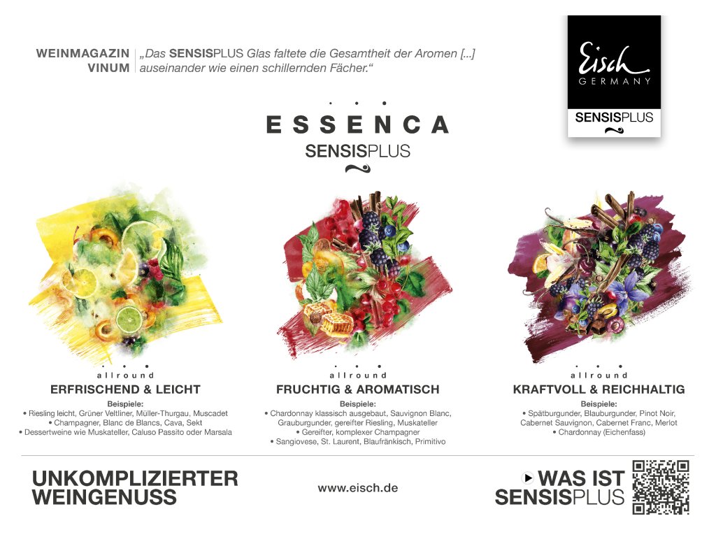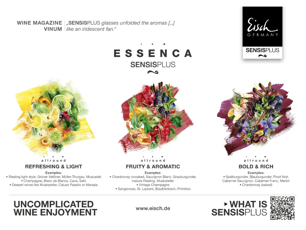 Se sklenicemi SENSISPLUS dosáhla společnost Glashütte Eisch milníku ve vývoji sklenic na víno. Ve sklenici SENSISPLUS dochází u vína k nepředstavitelnému rozvoji aromatických látek, což ve vinařském světě vyvolává nadšení i údiv. Eberhard Eisch popisuje své zkušenosti se sklenicemi SENSISPLUS takto: "S touto sklenicí nahlížím do budoucnosti vína!".
