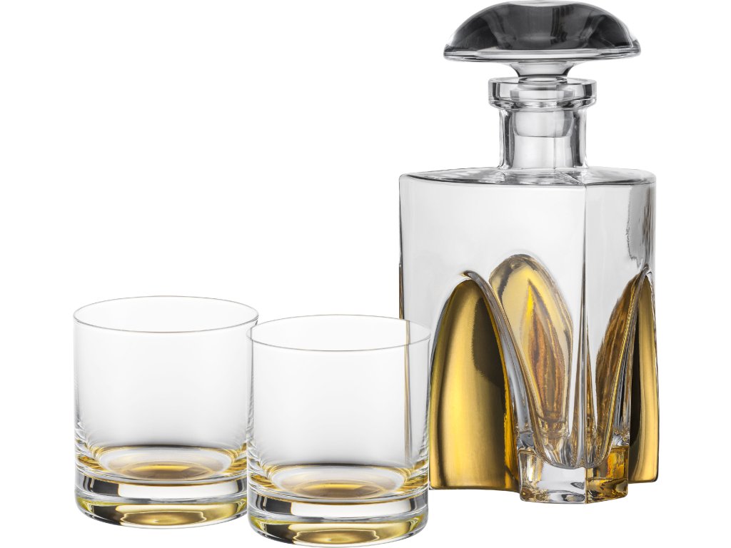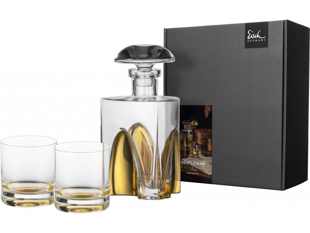 1 dekantér na whisky EISCH a 2 sklenice na whisky GENTLEMAN Gold, zušlechtěné pravým zlatem.