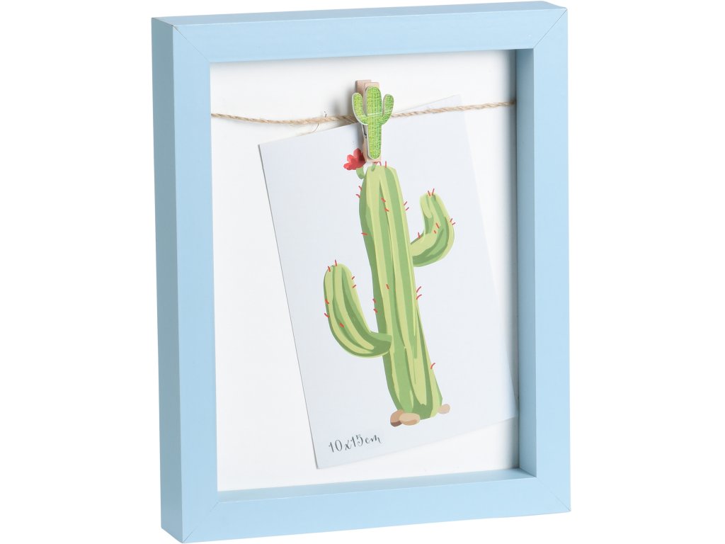 Součástí fotorámečku je vnitřní dekorace - na provázku kolíčkem zavěšené přání s kaktusem. Zajímavá dekorace třeba do dětského pokoje. Až Vás dekorace omrzí, můžete vložit svou fotografii.