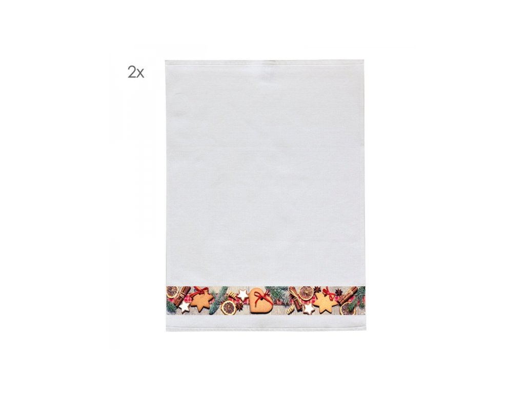 Kuchyňská utěrka s vaflovou vazbou s Vánočním potiskem sušenek v bílé barvě.