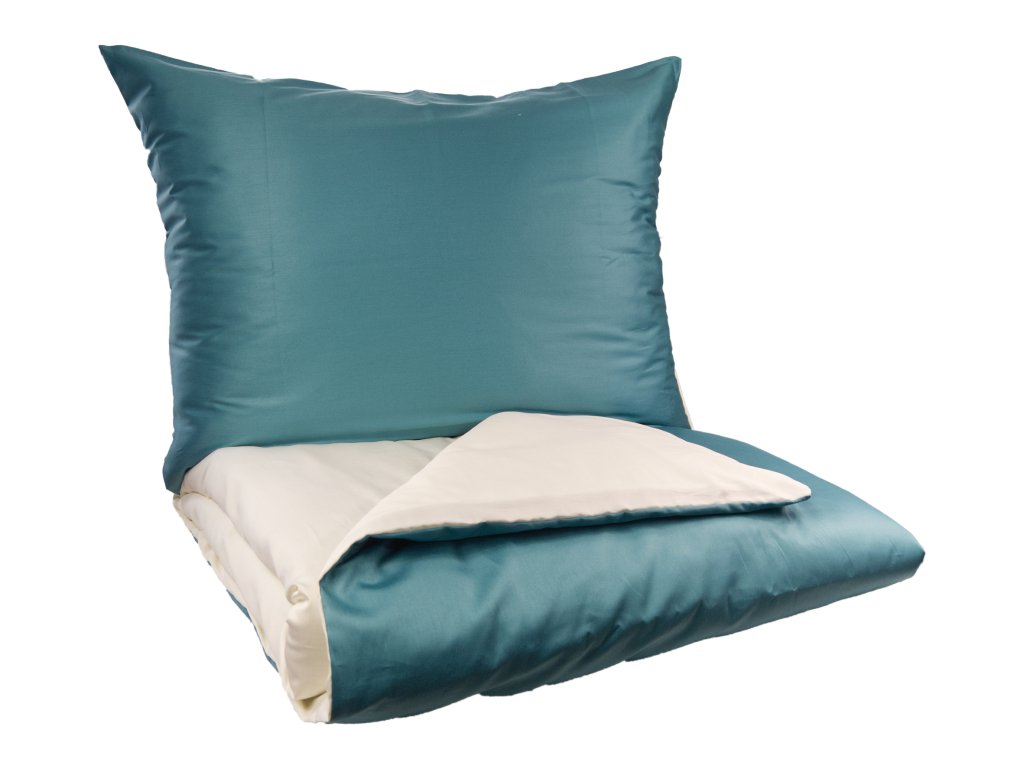Francouzské povlečení Satén UNI DUO 240x220, 70x90cm petrol/smetanová