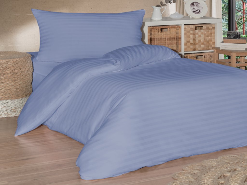 Francouzské povlečení saténový proužek 220x220, 70x90cm modré