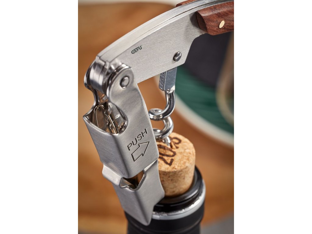 Dvoustupňový pákový systém pro snadné odstraňování všech typů vinných zátek.