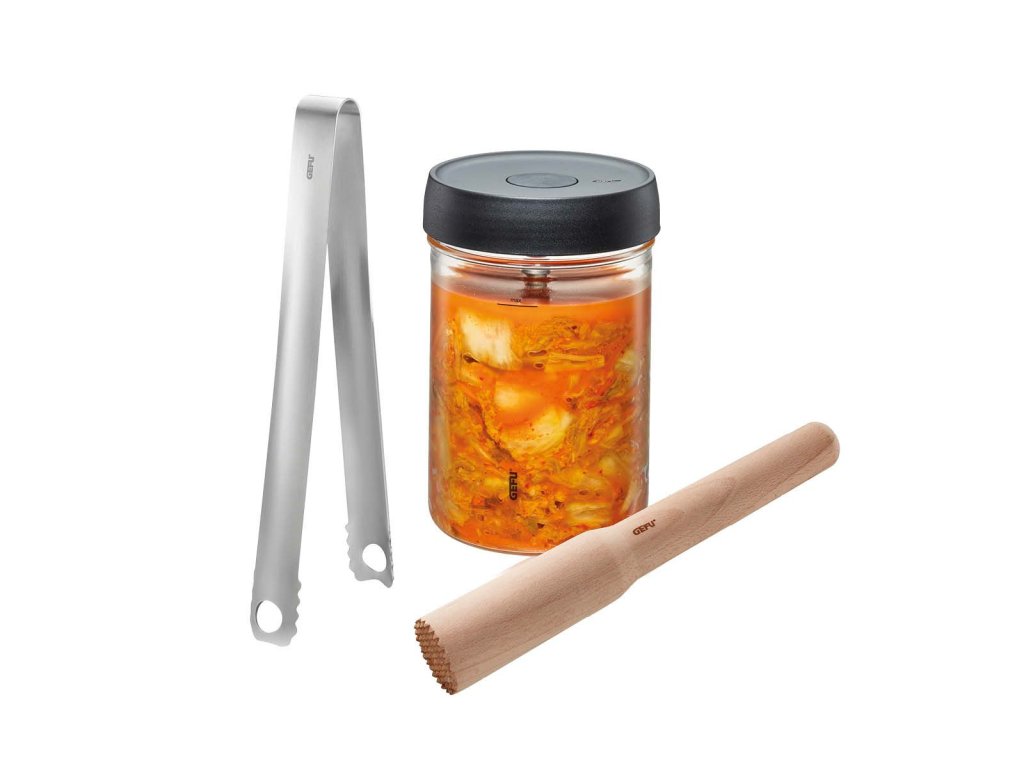 Do sklenice: Nakládání a zavařování zdravé zeleniny je naprosto trendy. Díky NATIVO už není kvašení vlastními silami problém! S praktickou fermentační sklenicí a chytrým systémem Ferment Vent System si můžete rychle a bezpečně připravit kysané zelí, aromatické kimchi, lahodné nakládané zeleniny nebo křupavou, kyselou mrkev.