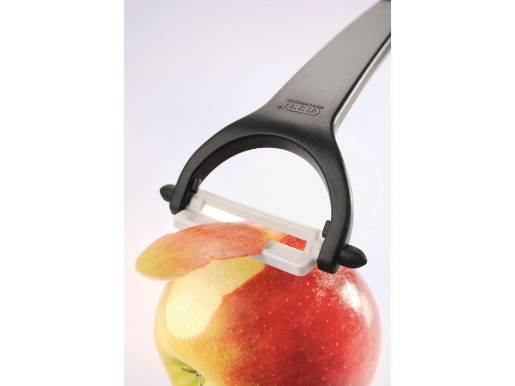 Keramická škrabka CERAMO je ideální pro loupání ovoce a zeleniny. Je vhodný pro praváky i leváky a nabízí řadu výhod, jako je chuťová a vůňová neutralita, antialergické vlastnosti a hygienické použití. Při zpracování kyselých potravin nedochází k oxidaci.