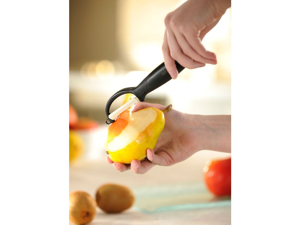 Keramická škrabka je stejně vhodná pro loupání ovoce i zeleniny.