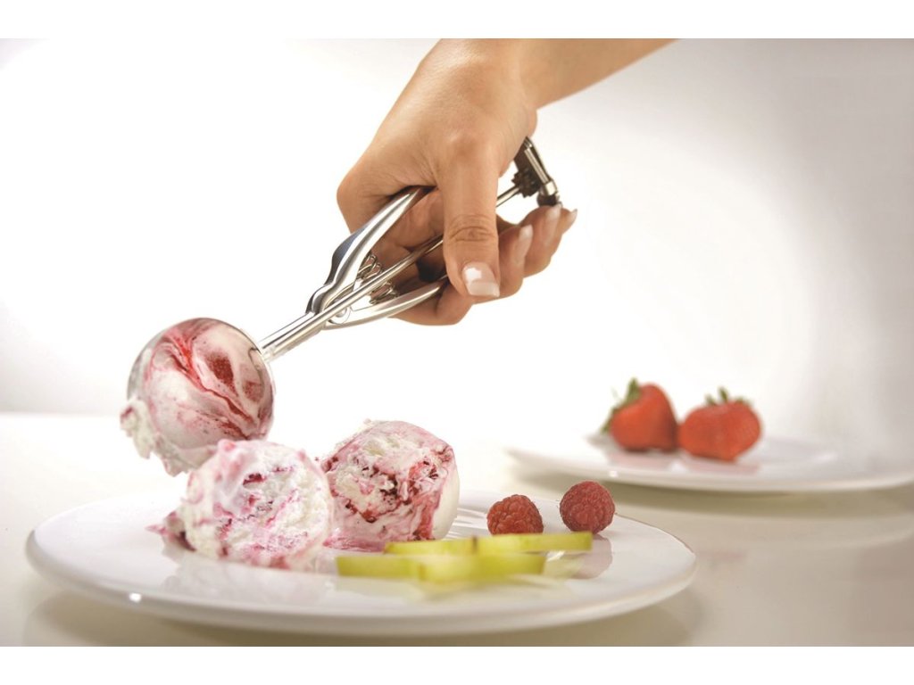 - Tip: Před použitím držte svůj eisportionierer pod teplou vodou, což usnadní vyjímání zmrzliny díky speciální tepelné vodivosti.