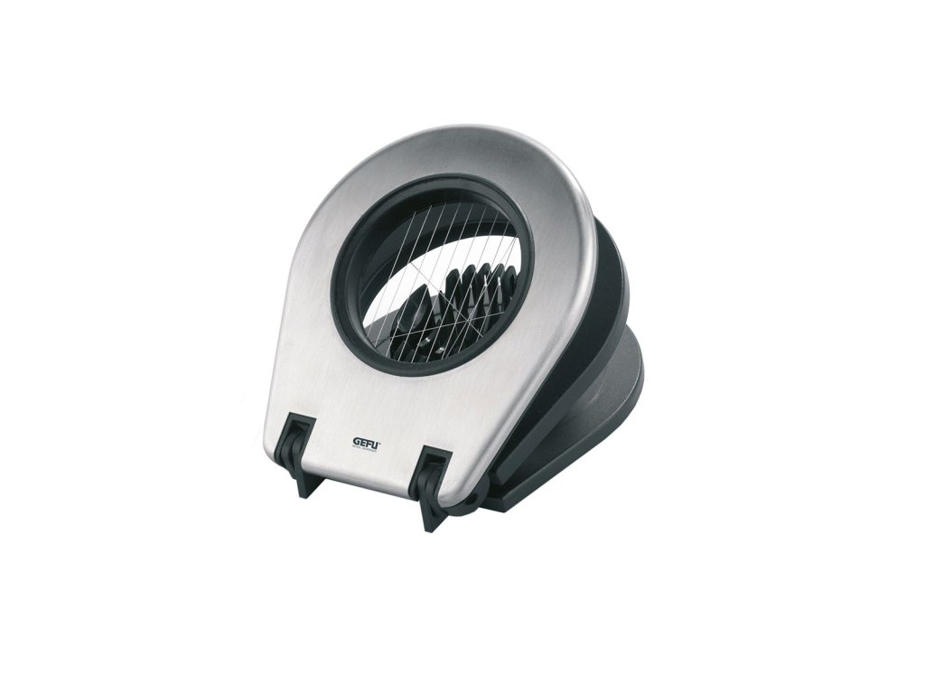 Kráječ na vejce DUO je moderní nástroj se dvěma funkcemi: snadno krájí tvrdě vařená vejce na rovnoměrné plátky nebo na šest stejně velkých dílků. Tímto způsobem vytvoříte lákavé kousky, které jsou ideální jako příloha na chléb, do salátů nebo na ozdobení studených mís. Vyroben z nerezové oceli a vysoce kvalitního plastu, je velmi hygienický a snadno se čistí.