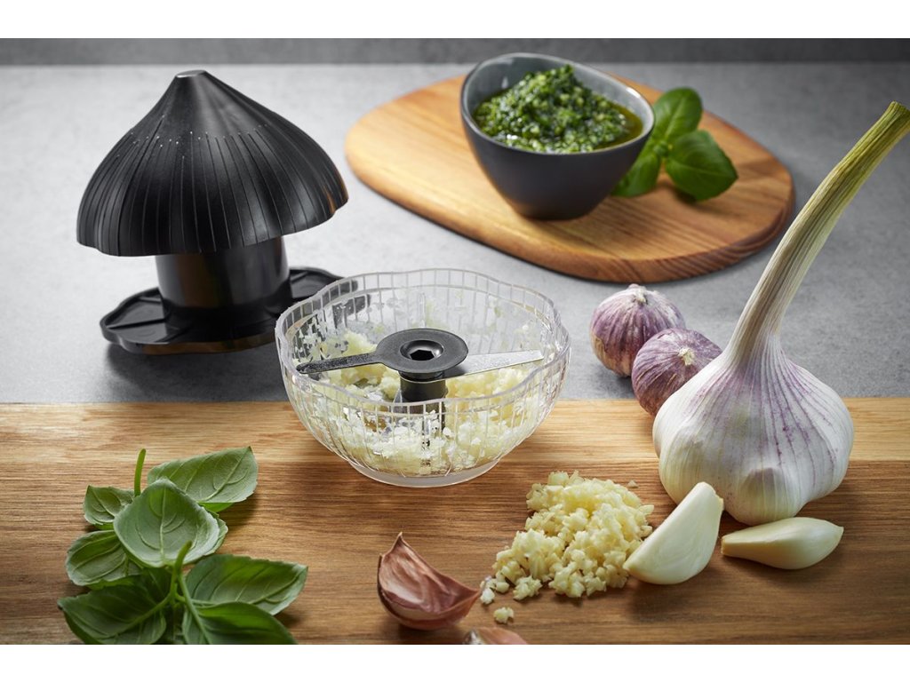 Lis na česnek AGLIOLI rychle naseká několik stroužků česneku díky promyšlené tlakové technice. Tři čepele z vysoce kvalitní oceli a integrovaný odklonovač zajišťují efektivní zpracování. Originální design ve tvaru česneku je doplněn o protiskluzovou nožičku pro bezpečné používání.