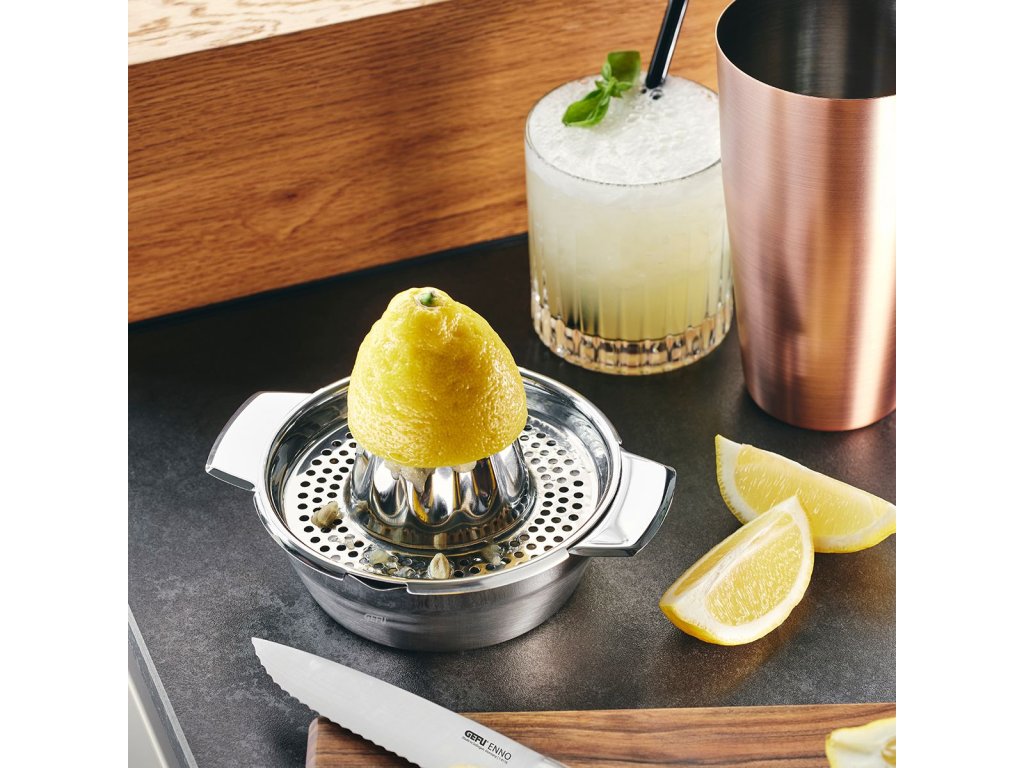 Lis na citrusy LEMON je ideální pro odšťavňování pomerančů, citronů, limetek a dalších citrusových plodů. S tímto lisem je odšťavňování hračkou. Semena a dužina zůstávají v horní části síta, zatímco čistá ovocná šťáva se shromažďuje v odkapávací nádobě, kterou lze pohodlně vylít přes výlevku.