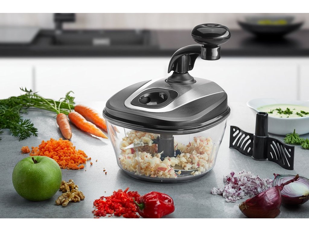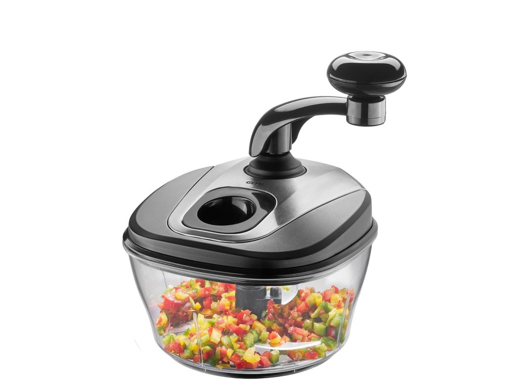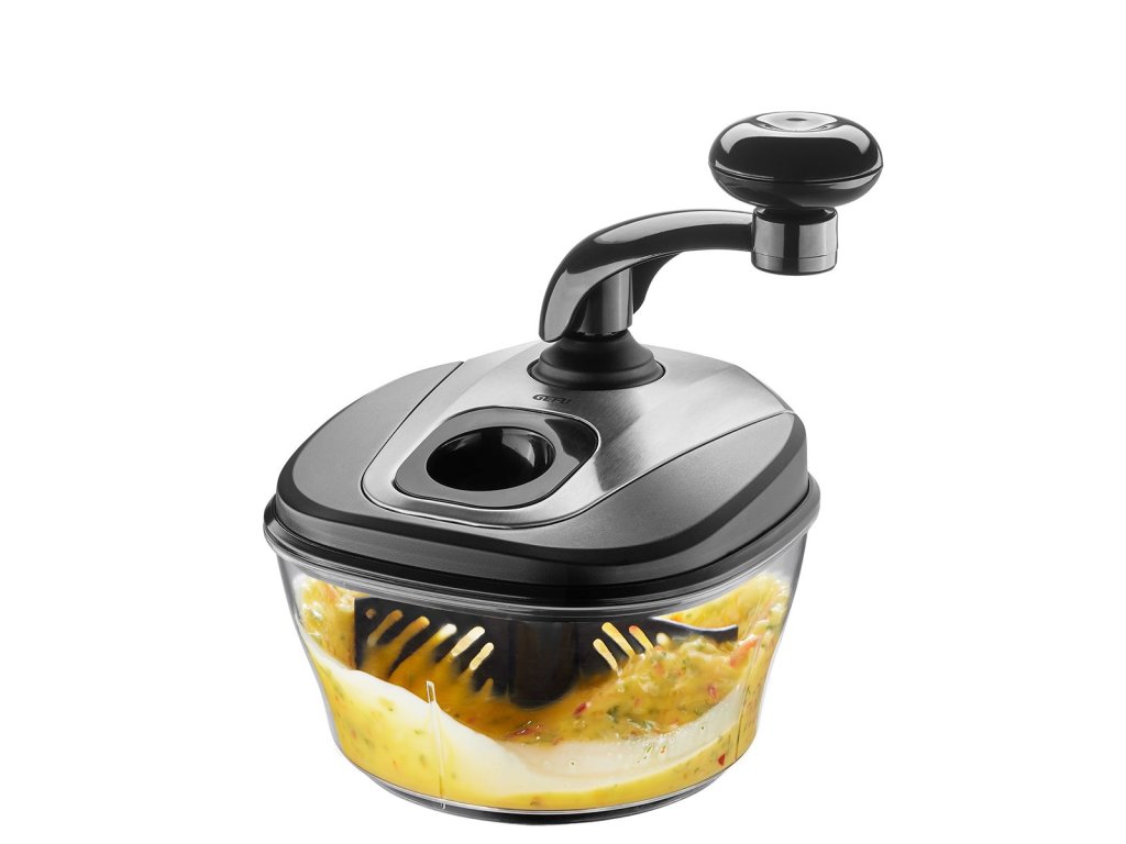 S multifunkčním sekáčkem SPINO si můžete opravdu užít něco zcela bezdrátového! Díky ručně ovládané turbo klice a vyměnitelným nástavcům si poradí s téměř vším, co obvykle nabídnou jen elektrické kuchyňské spotřebiče. Extra ostrá řezná vložka bez námahy naseká ořechy a cibuli, ovoce a zeleninu na váš další guláš nebo rajčata na pikantní salsu. Všestranná mixovací vložka vytváří úžasně krémové dezerty, kreativní salátové dresinky a dipy, nadýchané těstíčka a omelety. Příslušenství SPINO zahrnuje také odnímatelný oddělovač vajec, který pohodlně a bezpečně odděluje bílky pro sladké pusinky od žloutků pro zlatavou holandskou omáčku.